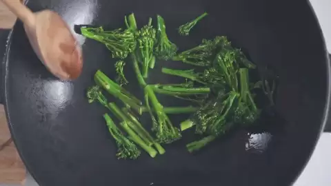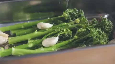 - Προσθέστε τα μπρόκολα Bimi® στο σκεύος και ανακατέψτε τα ώστε να καλυφθούν από το λάδι