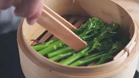 - Τοποθετήστε τα μπρόκολα Bimi ® σε ένα σουρωτήρι ή σε μια κατσαρόλα ατμού πάνω από το νερό που βράζει και σκεπάστε το σκεύος.